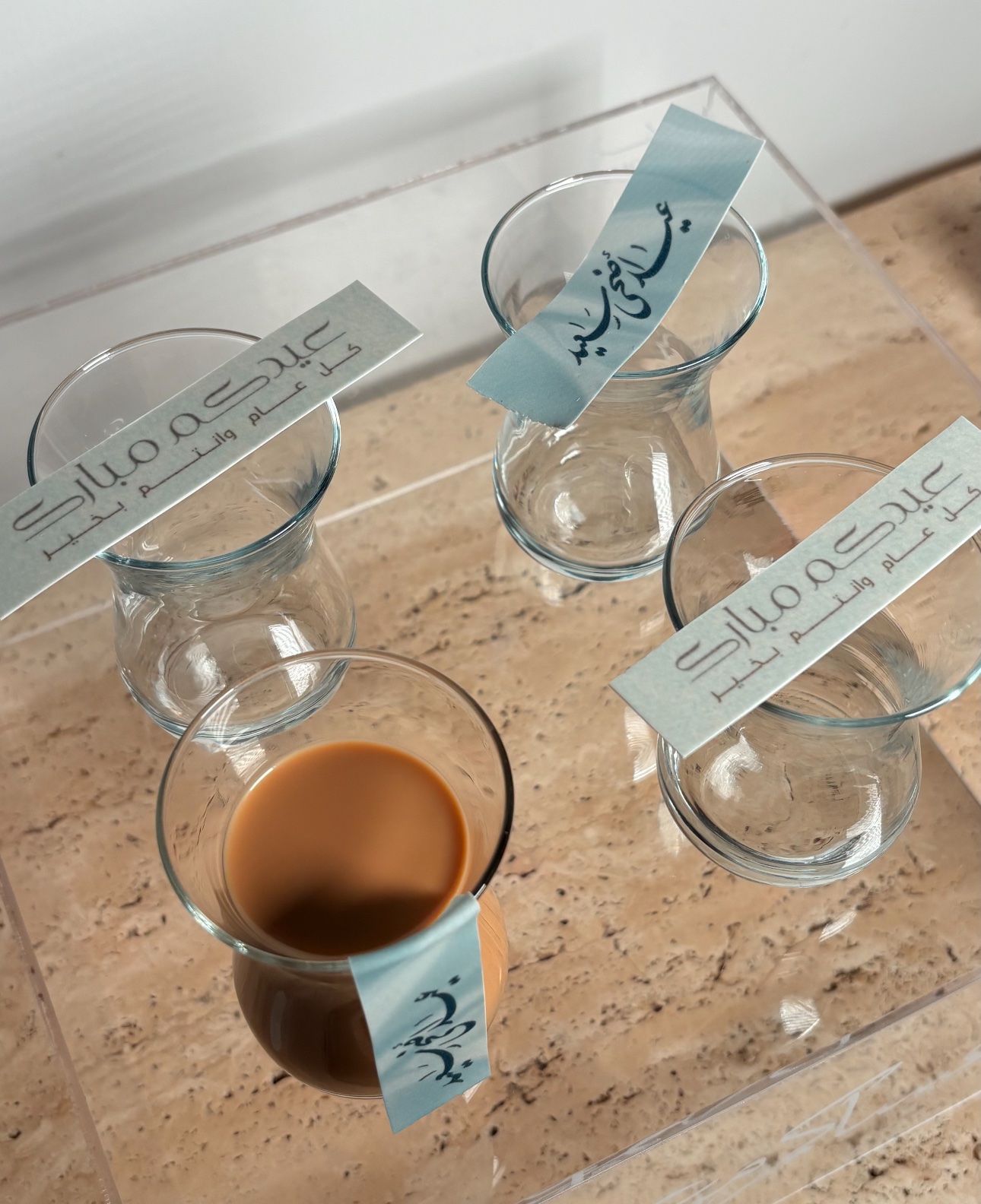 Edible sugar paper strips with festive Eid messages — perfect for adding a decorative touch to tea or coffee cups during special gatherings.