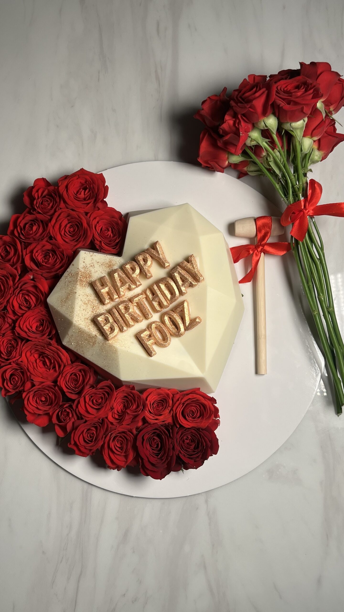 Breakable chocolate heart with flower + mini bouquet + 8 strawberries
